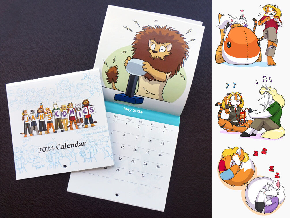 The 2024 calendar, featuring your favorite characters from Nine to Nine. All content is "safe for work". PDF download only.